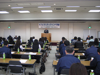 平成26年10月18日、㈱HAYASHIDA-CS総研の柿原まゆみ代表による、ホスピタリティマインド研修を開き、当社及び協力会社社員など62名が参加しました。研修では、ホスピタリティ(心からのおもてなし)を高めることの重要性や、「お客様の期待を超える感動サービス」による顧客満足度向上につながるサービスを行うための考え方などを学びました。今回の研修で学んだことを生かし、従業員の意識改革から、より一層の業務品質向上に努めていきます。